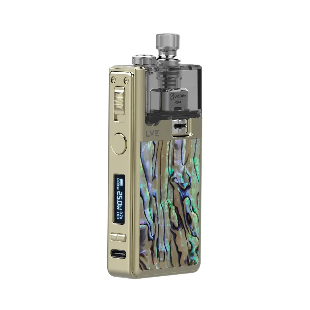 LVE Orion II Pod Vape Kit Abalone RBA Edition - GOLD ABALONE is backordered and will ship as soon as it is back in stock.