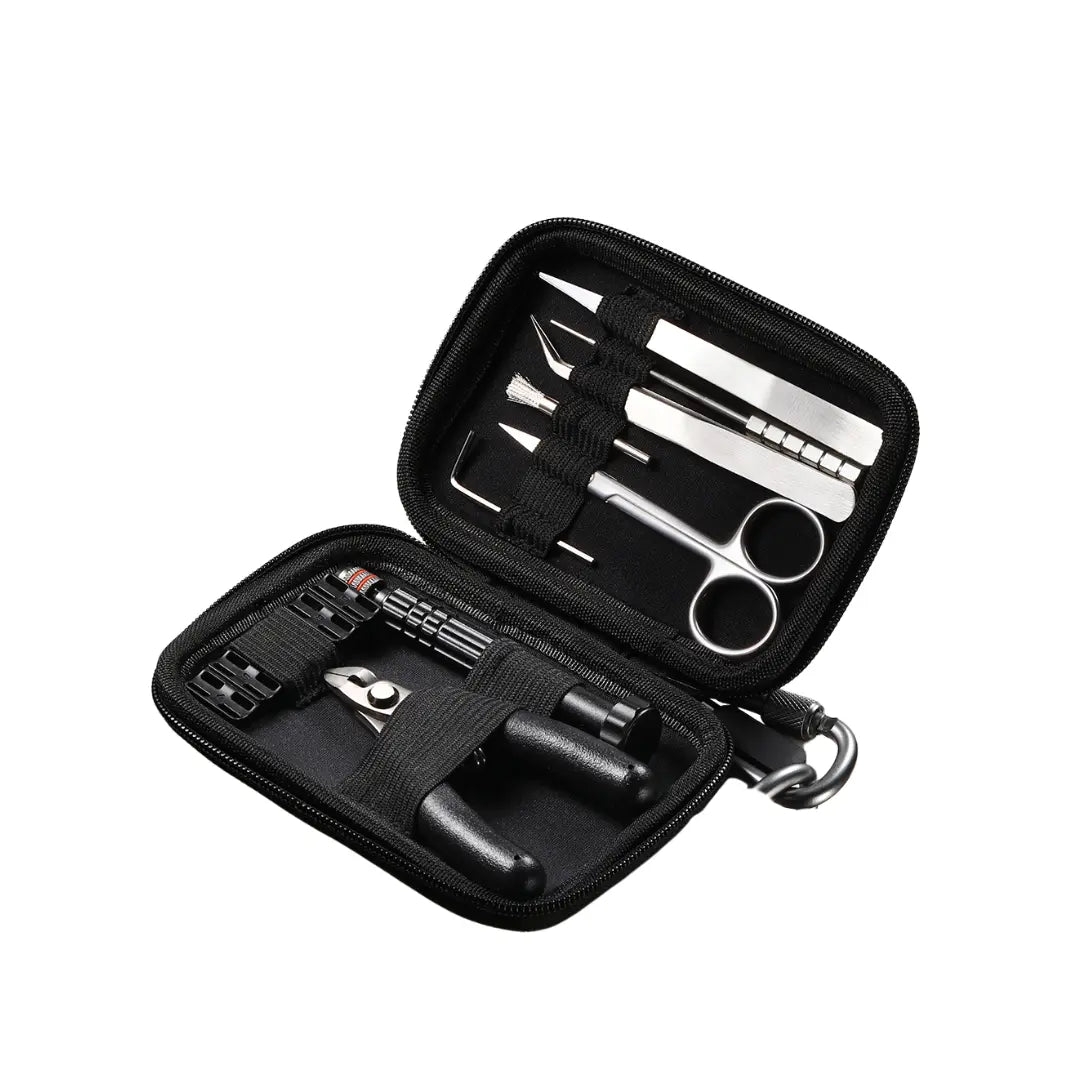 The Requiem Pro Tool Kit from ThunderCloud is the all-in-one solution for anyone building their own coils. Whether you're setting up an RBA, RTA or RDA, this 9-piece vape tool set includes everything you need - from trimming to coiling and even cleaning. It comes in a sturdy storage case with a buckle so you can keep everything organised and travel-ready. All the tools are high-quality and built to last, making this kit ideal for regular builders who want reliable gear that won’t let them down.
